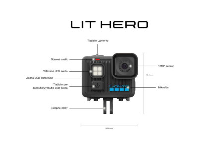 LIT HERO - Akčná kamera s 12 Mpx snímačom a vstavaným LED svetlom (3 úrovne jasu). Záznam videa v rozlíšení 4K pri 60 fps (2x Slo-Mo) a fotografie 12 Mpx. Pomer strán 4:3 s uhlom 165° poskytuje o 25 % vyššie zorné pole. Odolná konštrukcia, vodotesná do 5 m. Vstavaná batéria Enduro pre dlhšiu výdrž a výkon v chlade. Stabilizácia HyperSmooth cez aplikáciu Quik. Magnetické držiaky a vymeniteľný hydrofóbny kryt objektívu. Kompatibilita s 35+ držiakmi. Automatické nahrávanie do cloudu a tvorba videí