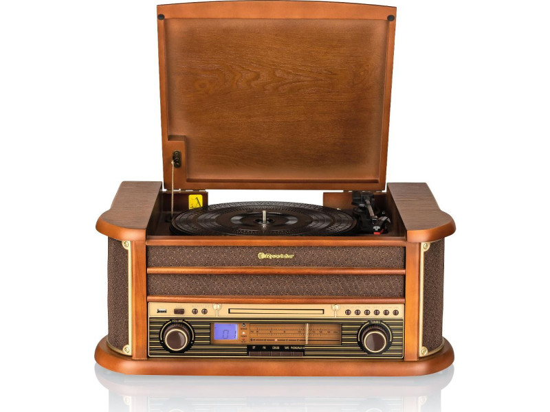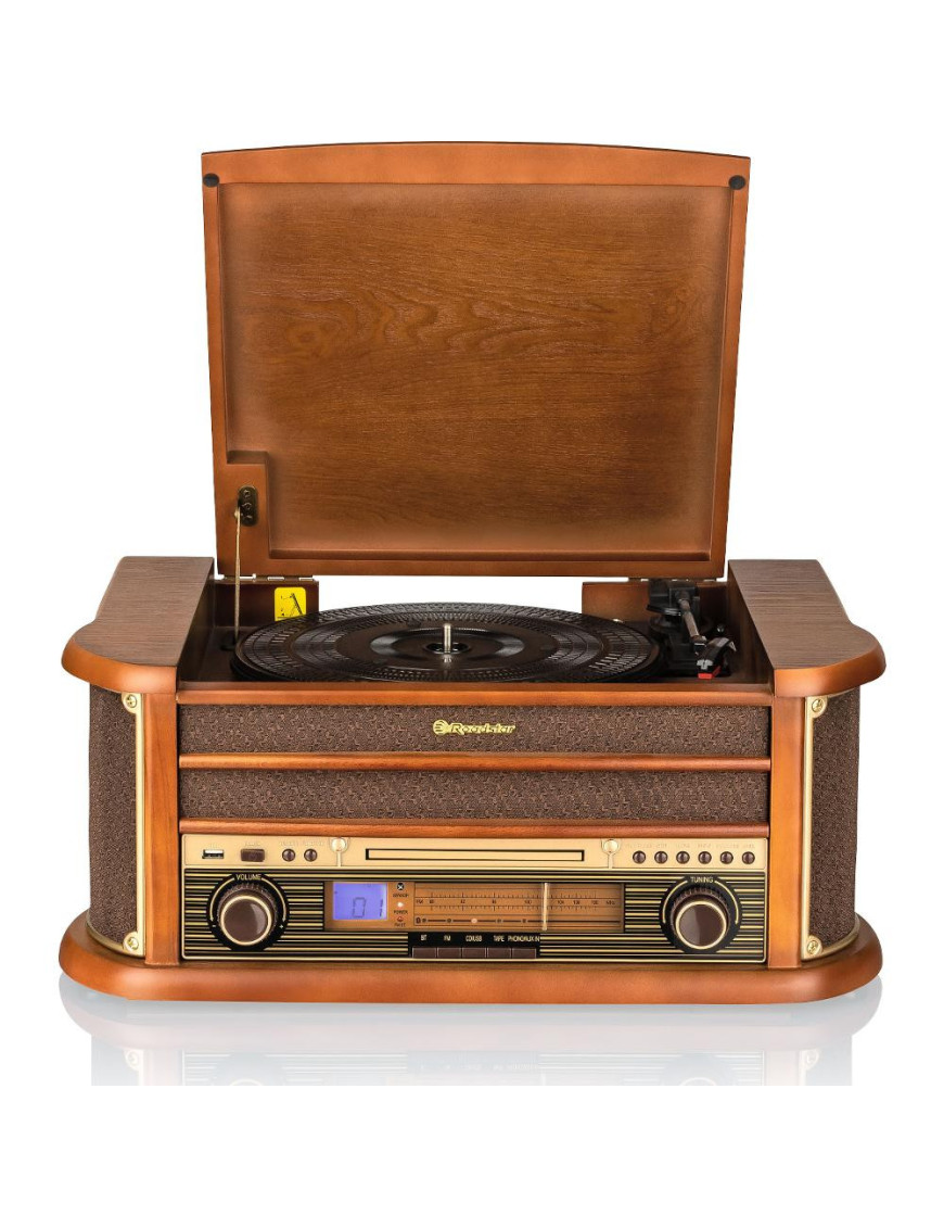 Gramofón ROADSTAR HIF-1993BT Bluetooth Stereo CD/MP3 prehrávač, predný podávač CD Gramofón; 33/45/78 otáčok Kazetový prehrávač s autostopom Diaľkové ovládanie 2 vstavané reproduktory Výkon 40W PMPO, 2x 2,5W RMS LCD displej, modré podsvietenie Funkcia kopírovania z gramofónu...