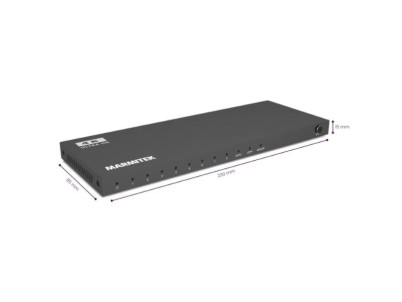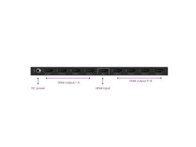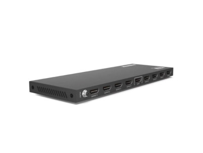 HDMI Splitter 4K 60Hz (1 vstup/8 výstupov, HDMI 2.0) umožňuje distribuovať jeden HDMI zdroj až na osem obrazoviek v krištáľovo čistom 4K60 rozlíšení. Ideálny pre hotely, obchody a AV inštalácie. Integrovaný downscaler zabezpečuje optimálny obraz pre 4K aj Full HD displeje. Robustný kovový dizajn a repeater garantujú stabilný signál na dlhšie vzdialenosti. Podporuje kaskádové zapojenie až troch splitterov pre 22 obrazoviek. Jednoduchá inštalácia, bezpečné napájanie, len s EU zástrčkou. Rozmery 15