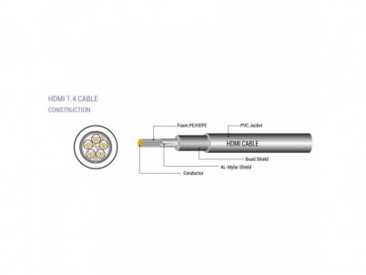 Prepojovací kábel HDMI samec/HDMI samec, dĺžka 5m. Vonkajší priemer kábla je 7,5 mm, konektory: 24K pozlátené, minimálne rušenie, max rozlíšenie: 4K x 2K (2160p), maximálna frakcionácia: 30 FPS, AWG: 28 maximálna šírka pásma: 10,2 Gb/s, ARC: Áno, CEC: Áno