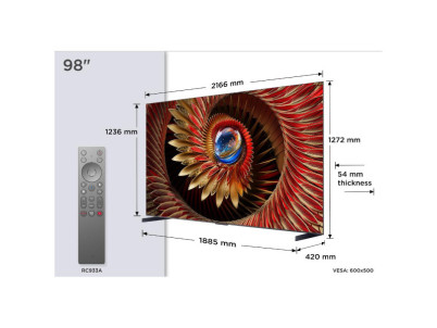 Mini LED QLED televízor TCL 98C8K Mini LED QLED TV Smart TV Typ obrazovky: QLED Energetická trieda: D Energetická trieda HDR: G Modelový rok: 2025 Systém repro: Iný Výkon reproduktorov: 90 W Kvalita obrazu: DOLBY VISION, Dolby Vision IQ, HDR, HDR10, HDR10+, HLG, Lokálne stmievanie, UHD...