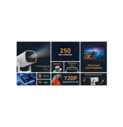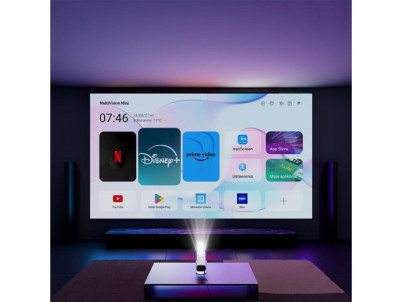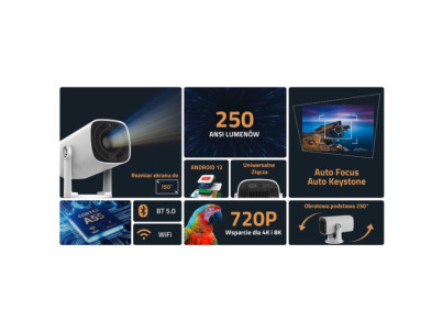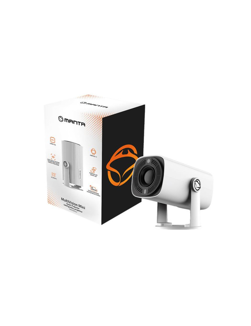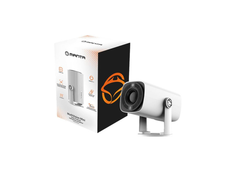 MANTA MultiVision mini SMART, LED Projektor WXGA - Kompaktný LED projektor s jasom 250 ANSI a Android 12. Ponúka rozlíšenie 1280x720px (podporuje 4K/8K), Auto Focus, Auto Keystone a pohyblivú projekciu 250°. Vybavený procesorom ARM Cortex-A55 (1,5GB RAM/8GB ROM), WiFi, Bluetooth a konektormi HDMI/USB. Projekcia až 150" z vzdialenosti 0,9-4,2m. Vhodný na domáce aj vzdelávacie použitie. Hmotnosť len 0,89kg.