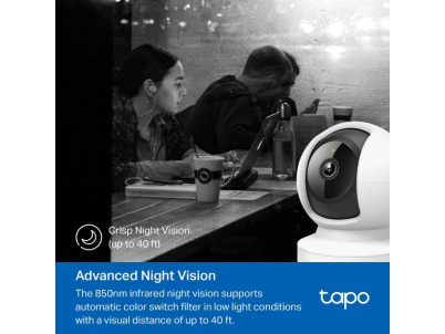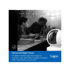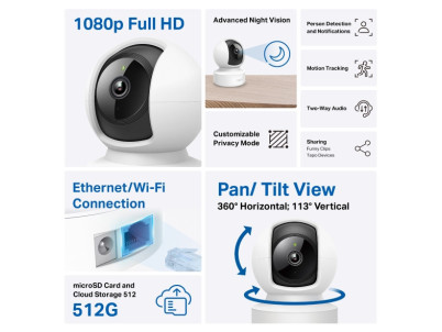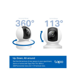 Kamera Tapo C202 ponúka 1080p Full HD video s rozlíšením 1920 × 1080 px a snímkovou frekvenciou až 30 fps. Senzor 1/2.8'' CMOS zaisťuje jasný obraz, zatiaľ čo mechanické otáčanie 340° a naklonenie 70° poskytuje široký dohľad. Nočné videnie je zabezpečené IR LED s dosahom do 40 ft. Podporuje detekciu pohybu, osôb a plaču dieťaťa a komunikuje prostredníctvom obojsmerného audia. Ukladá dáta na microSD kartu (do 512 GB) a umožňuje cloudové úložisko cez Tapo Care. Integrované zabezpečenie zahŕňa 128-