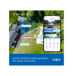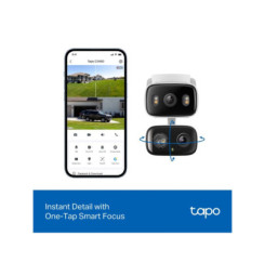 Tapo C246D je pokročilá bezpečnostná kamera s dvoma 2K objektívmi, ktorá dokáže simultánne monitorovať dve rôzne oblasti. Disponuje širokouhlým 125° objektívom a 6mm telefoto objektívom s inteligentným sledovaním pohybu. Kamera je odolná voči poveternostným vplyvom s IP65 certifikáciou, vhodná pre interiér aj exteriér. Obsahuje AI detekciu pohybu, osôb, vozidiel, miláčikov a plač dieťaťa s okamžitými notifikáciami. Podporuje farebné aj infračervené nočné videnie a dvojsmerné audio. Je kompatibil