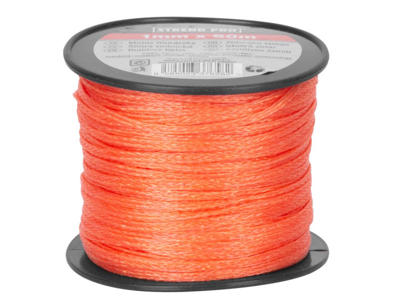 Murársky motúz vyrobený z PE s dĺžkou 50 m s priemerom 2 mm je vhodný na vyznačovanie na stavenisku. Je možné ho použiť ako vodiacu šnúru pri stavbe múrov alebo na určenie priamky počas murovania, omietky, maľby alebo iných stavebných prác. Motúz je odolný voči UV žiareniu, chemikáliám a organickým látkam.