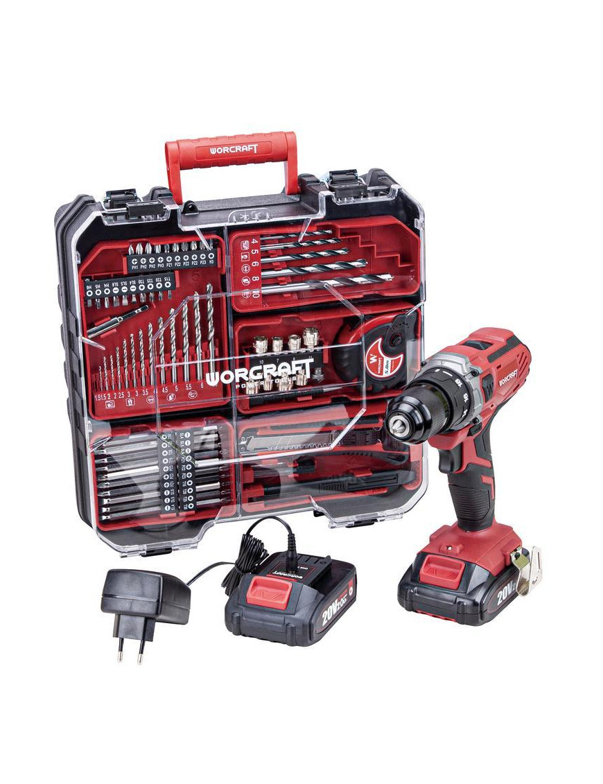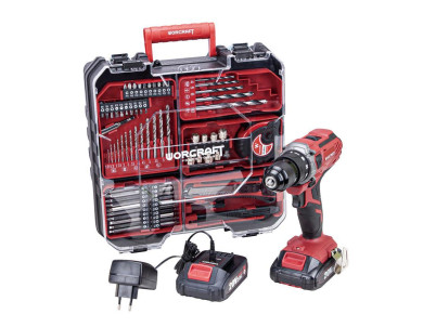 Skrutkovač Worcraft CD-S20LiWT ShareSYS, 20V Li-ion, 2x akumulátor 2.0 Ah, nabíjačka, set s príslušenstvom 73ks, v kufríku