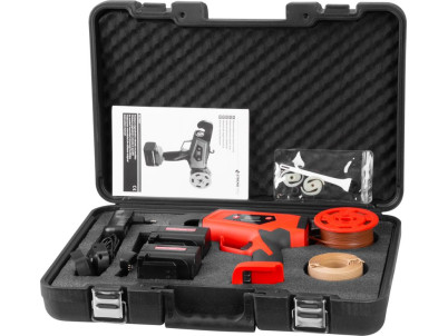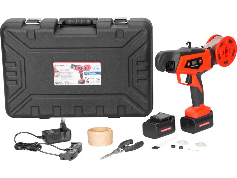 Akumulátorový viazač viniča Strend Pro Profesional s LCD displejom sa používa najmä na viazanie výhonkov viniča (eventuálne ostatných rastlín) s priemerom maximálne do 25 mm. Výrazne uľahčuje prácu vo vinosadoch, práca je nielen jednoduchá, ale uviazaný spoj je aj oveľa kvalitnejší ako pri ručnom viazaní. Na jedno nabitie umožňuje až 8000 uviazaní. Balenie obsahuje: 1x viazač, 2x akumulátor 2.0 Ah, 1x dvojnabíjačku, 1x viazací drôt v papieri, 1x viazací drôt v plaste, kliešte, kefku a náhradné diely.