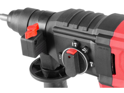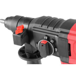 Kladivo poskytuje množstvo praktických funkcií ako je vŕtanie, vŕtanie s príklepom, sekanie. Taktiež je možné nastaviť uhol sekania, hĺbku vŕtania, smer otáčania a taktiež rýchlosť/ príklep. Kladivo je nutné používať s prídavnou rukoväťou. Pridávna rukovať uľahčuje prácu, poskytuje lepší úchop a je možné otáčať ju o 360°. Prepínač pre výber prevádzkového režimu u...