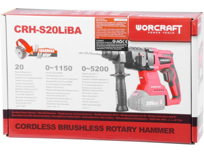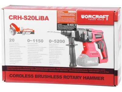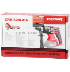 Vŕtacie kladivo Worcraft CRH-S20LiBA je určené na príklepové vŕtanie a sekanie do betónu, tehál, kameňa, dreva, plastu, kovu a rovnako aj na skrutkovanie (s použitím špeciálneho príslušenstva). Vŕtacie kladivo disponuje výkonným, bezuhlíkovým motorom. Maximálny priemer vŕtania do dreva predstavuje 30 mm, do ocele 13 mm a do betónu 24 mm. Pracuje rýchlosťou až 1150 otáčok/ min a počet príklepov dosahuje max. 5200 bpm.