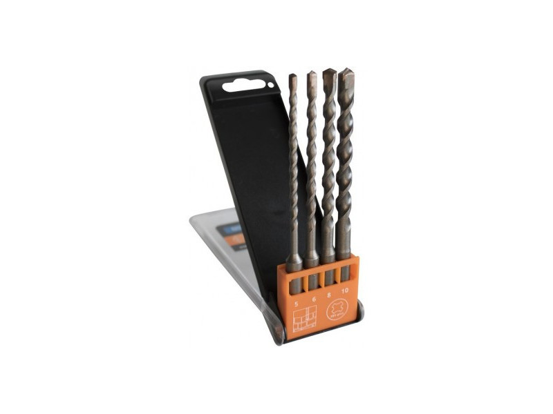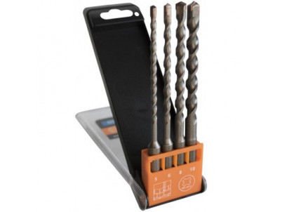 4-dielny set SDS-plus vrtákov, vhodné pre všetky otočné kladivá s držiakom SDS-plus. Vyrobené z odolného karbidu pre dlhú životnosť a odolnosť.