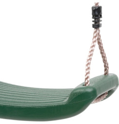 Detská zelená plastová hojdačka je praktická, ľahko umiestniteľná takmer kdekoľvek vo vašej záhrade. Hojdačka nemá opierku a nemá ani prednú ochranu pred pádom, preto je potrebné na dieťa dávať pocelý čas pozor. Nosnosť hojdačky je 70 kg a jej rozmery sú 43 x 17 x 8,5 cm. Na oboch stranách sedacej časti sú pripevnené laná dlhé 2 m, s priemerom 10 mm. Je potrebné ich poriadne uviazať na miesto, kde chcete hojdačku mať. Uistite sa, že je pripevnená správne, nie príliš vysoko a že nehrozí riziko poranenia.