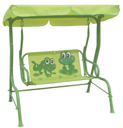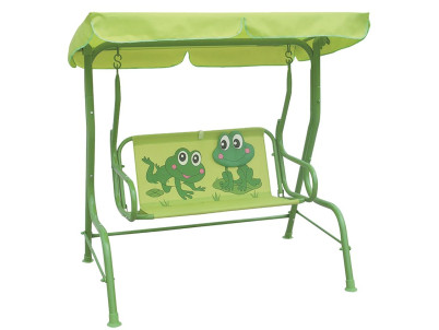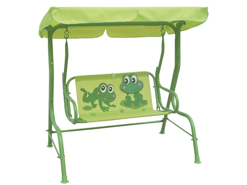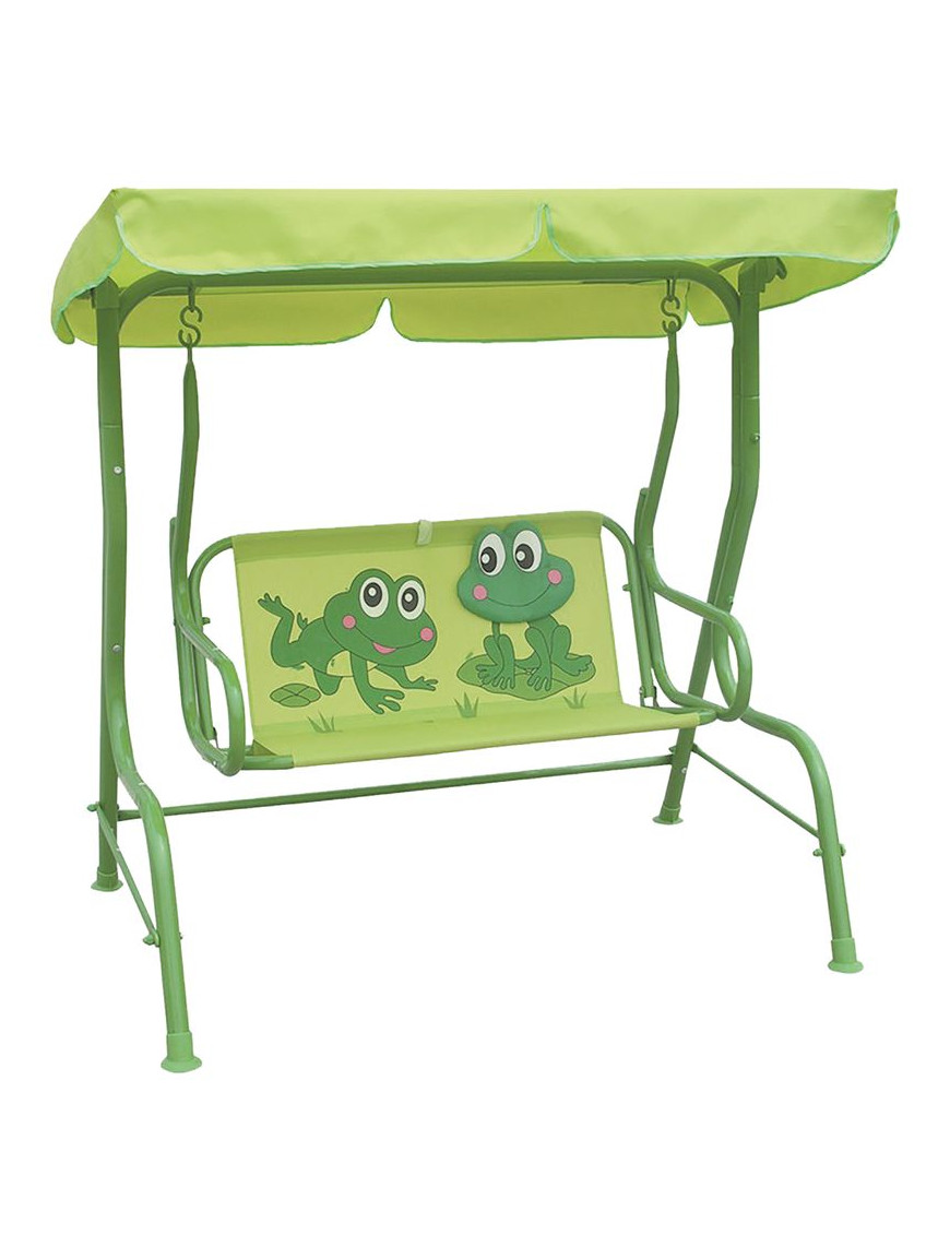 Detská hojdačka ponúka veľa zábavy pre najmenšie ratolesti. Je určená pre maximálne 2 deti. Sedacia časť obsahuje aj upínacie popruhy, ktoré môžete zapnúť dieťaťu okolo brucha. Rozmer : 115x75x110 cm a maximálna nosnosť je 80 kg. Hojdačku nepreťažujte, môže dôjsť k jej poškodeniu a k Vášmu poraneniu. Farba : zelená s motívom žiab. Hojdačku je potrebné položiť na rovný povrch.