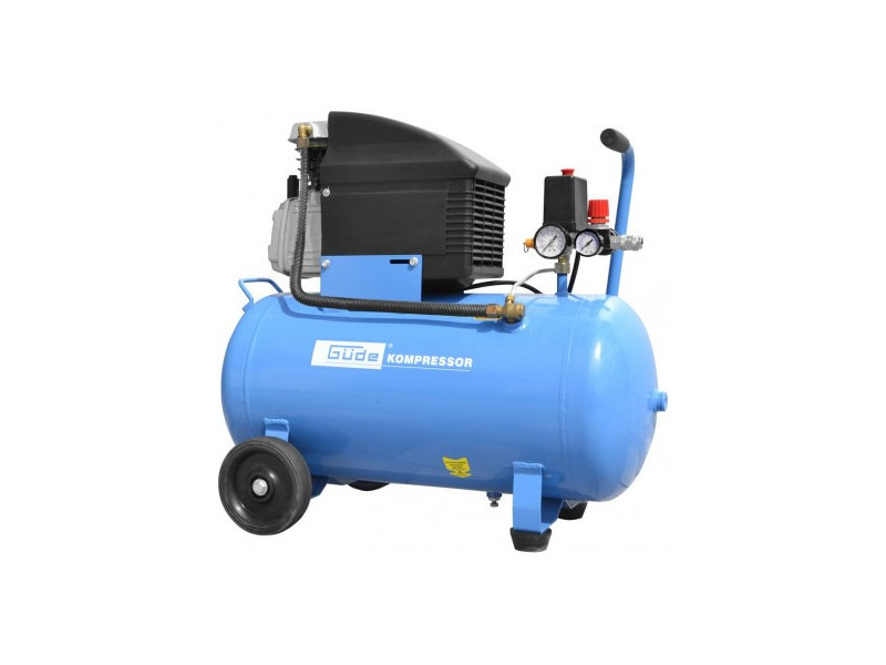 Piestový kompresor, 1-piestový agregát s olejovým mazaním, reduktor tlaku, 2 manometre, 2 DL prípoje, tepelná ochrana motora, odkalovací ventil, plastové kolesá.
