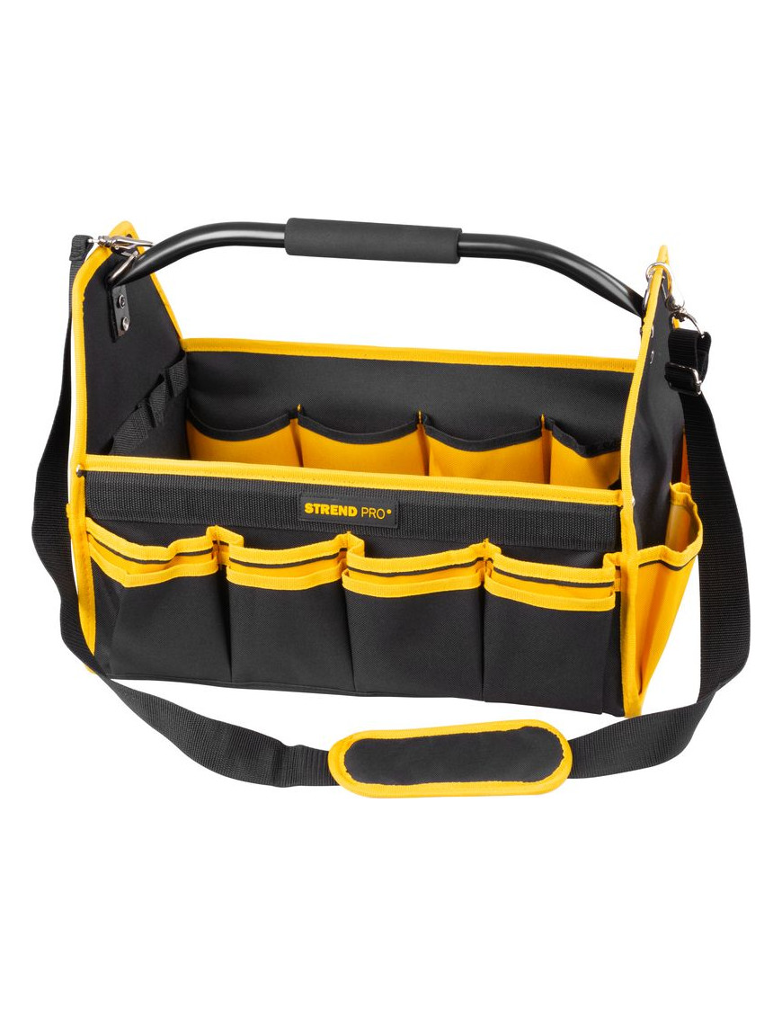 Praktická brašňa Strend Pro na ťažké náradie je praktickým pomocníkom pre každého majstra a kutila. Obsahuje množstvo bočných vreciek na uloženie menšieho náradia. Pripojiteľný ramenný popruh pre komfortné prenášanie. Maximálna nosnosť: 20 kg. Rozmery: 45x28x33 cm.