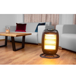 Ohrievač disponuje odolným masívnym plastovým telom a ponúka aj možnosť oscilácie v uhle 90 º pre efektívnejšie šírenie tepla do celej miestnosti. Samozrejmosťou je bezpečnostná poistka proti prevrhnutiu. Ohrievač je tiež vybavený systémom automatického vypnutia, ktorý ho v prípade prevrhnutia automatický vypne. Praktická rukoväť umožní jednoduché prenášanie, takže si ohrievač môžete vždy preniesť do inej miestnosti. UPOZORNENIE: Nikdy nezapínajte naraz všetky trubice, môže dôjsť k poškodeniu ohrievača !