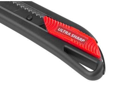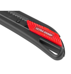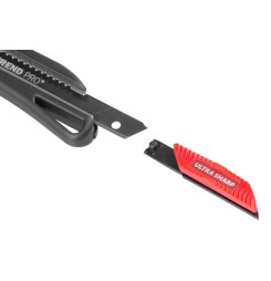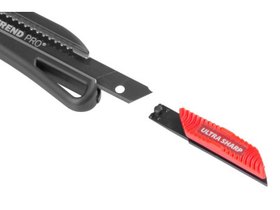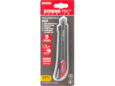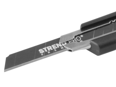 Profesionálny odlamovací nôž Strend Pro Premium BlackMatt so špeciálnym dizajnom a znamenitou kvalitou. Čepeľ je vyrobená z uhlíkovej ocele, ktorá zaručuje dlhšiu životnosť, čisté rezy a má až o 30% lepšiu ostrosť. Rukoväť je protišmyková a na dotyk zároveň jemná, takže pracovať s týmto nožom je komfortné a bezpečné. Vysúvanie čepele s automatickou aretáciou pre rýchlejšie nastavenie. Rozmer čepele: 9 mm.