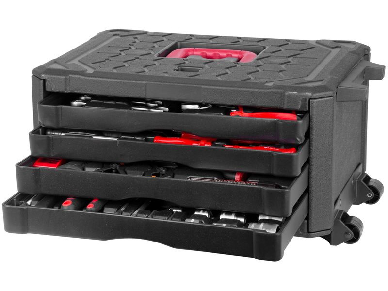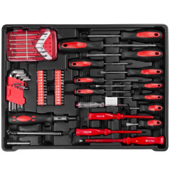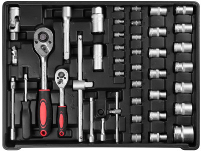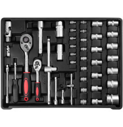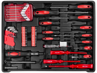 15 ks 1/4" hlavica 4-14 mm • 14 ks 1/2" Hlavica 8-30 mm • 2 ks 1/2" hlavica na sviečky 16,21 mm • 2 ks 1/2", 1/4" Kardaň • 2 ks 1/2", 1/4" vrátidlo • 1 ks 1/2" predlžovací nadstavec • 2 ks 1/4" predlžovací nadstavec • 1 ks pružný nadstavec • 2 ks 1/2", 1/4" račňa • 1 ks 1/4" Nadstavec na hlavice 150 mm • 6 ks mikro skrutkovac (s/d 1.0, 1.4, 1.8, 2,4 mm; # 0, 1) • 9 ks imbusový kľuč 1.5-10 mm • 24 ks bit • 1 ks skrutkovač na bity • 1 ks držiak bitov • 14 ks skrutkovač: (-) 3 x 75, 4 x 100, 5 x 75, 6 x 38, 6 x 100 mm (+) 3 x 75, 4 x 100, ...