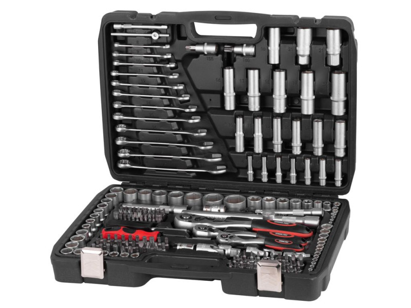 Nevyhnutnou súčasťou dielne je kvalitná 215 dielna sada náradia Strend Pro uložená v praktickom kufri, v ktorom má každý diel svoje úložné miesto, preto nehrozí, že v ňom budete mať neporiadok. Obsahuje nasledujúce náradie: