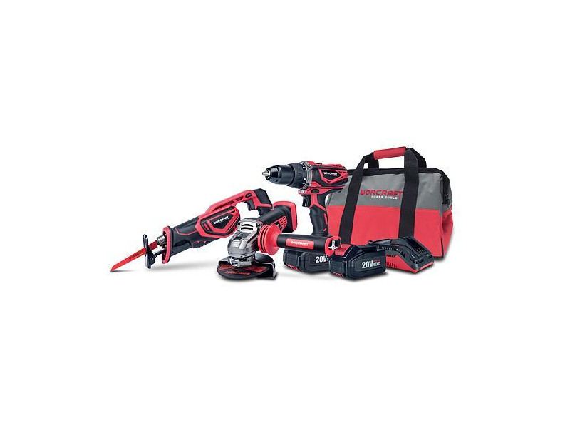 Set Worcraft WSET-02, S20Li ShareSYS, chvostová píla, uhlová brúska, skrutkovač, nabíjačka, 2x 4.0 Ah akumulátor + brašňa