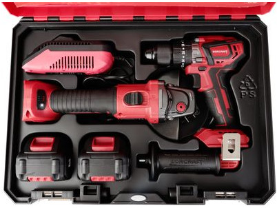 Set náradia Worcraft XCUBE001 – Bezuhlíkový skrutkovač a uhlová brúska, 2x 4.0 Ah akumulátor, nabíjačka