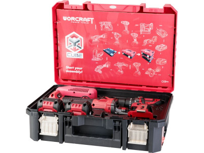 Set Worcraft XCUBE001 ShareSYS Toolbox, skrutkovač CHD-S20LiBA + uhlová brúska CAG-S20LiBS-125 mm, bezuhlíkové, 2x 4.0 Ah akumul
