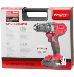 Skrutkovač Worcraft CHD-S20LiWB s upínacím priemerom 0,8-10 mm je určený na vŕtanie do dreva, kovu, keramiky, plastu a betónu. Taktiež je vhodný na skrutkovanie a rezanie závitov. Skrutkovač pracuje maximálnou rýchlosťou 1400 otáčok/min. Je vybavený elektronickou reguláciou otáčok. Otáčky je možné regulovať otáčaním doľava/doprava. Skrutkovač poskytuje maximálny krútiaci moment 40 Nm. Disponuje možnosťou nastavenia krútiaceho momentu v 18+1+1 krokoch, čo slúži k tomu, aby sa zabránilo poškodeniu hláv skrutiek alebo vrtákov. Otáčaním regulačného gombíka je možné nastaviť krok od 1 (skrutky s ľahkým otáčaním) po 18 (skrutky s ťažkým otáčaním alebo náročné vyvrtávanie). Nastavenie so znakom kladiva sa používa pre vŕtanie s príklepom.