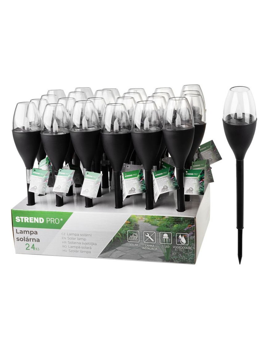 Lampa Strend Pro Garden, plast, efekt plameňa, solárna, 6,5x40 cm, 1x LED, Sellbox 24 ks