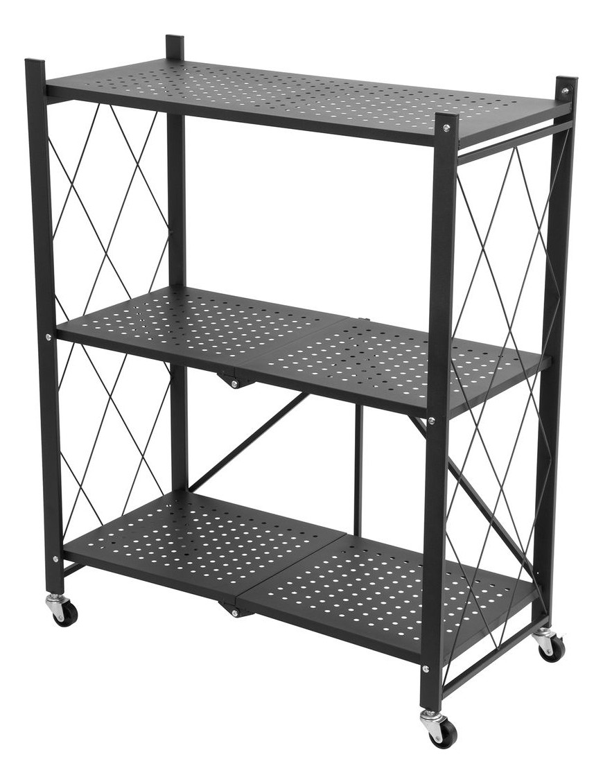 3-policový skladací a pojazdný regál MagicHome je praktický pomocník v domácnosti všade tam, kde potrebujete niečo uskladniť. Regál je celý kovový v elegantnom dizajne, jeho celková nosnosť je 150 kg a nosnosť jednej police je 50 kg pri rovnomernom zaťažení. Hlavnou výhodou regálu je jeho skladnosť a pojazdnosť. Vrchná časť sa jednoducho odmontuje a zvyšné police sa dajú jednoducho sklopiť, preto keď ho nepoužívate, jednoducho ho odložíte a vyberiete v prípade potreby. Keďže je postavený na 4 kolieskach, veľmi jednoducho ho presuniete a zabrzdíte 2 brzdami. Celkové rozmery regálu: 87x72x34 cm.
