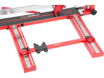 Rezač dlažby Strend Pro s laserom je určený na rezanie keramiky, jednostranne glazúrovaných dlaždíc, terakoty a mramoru. Manuálny olejový mazací systém umožňuje podľa potreby premazať pohybový aparát (vhodný olej: minerálny olej do šijacích strojov). Posúvateľný bežec na zaistenie rohu obkladačky pri diagonálnom reze. Červená laserová línia s prepínačom On/OFF (630-670 nm, trieda 2, 2xAA súčasťou balenia). Rezacie koliesko je vyrobené z vysoko kvalitnej zliatiny titánu. Maximálna dĺžka rezu: 800 mm. Hrúbka rezu: 6-15 mm.