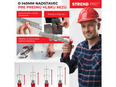 Rezač Strend Pro JS-102GD je určený na rezanie polystyrénu, plastu, montážnej peny či molitanu. O to sa postará kvalitný a ostrý nôž, s ktorým dosiahnete čistý rez. Rezanie materiálov je jednoduché vďaka silnému 220 W motoru. Pomocou nástavca viete nastaviť hrúbku rezania 13 cm alebo 22 cm presne podľa Vašich potrieb. Tvar rezača je prispôsobený na ľahké uchopenie a manipuláciu pre absolútnu precíznosť pri rezaní.