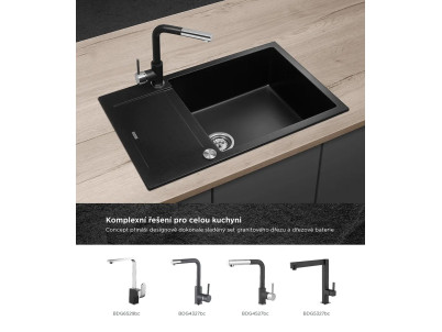 Atraktívny vzhľad, kvalitné spracovanie, vysoká odolnosť a ľahká údržba, to sú hlavné prednosti granitových drezov Concept. Perfektne zapadnú do každej kuchyne a v kombinácii s batériami Concept tvoria dokonale zladený celok. Model DG05L60bc je súčasťou designovej rady LINEA, ktorú spájajú moderné hranaté línie a v kuchyni pôsobí veľmi nadčasovým a elegantným dojmom.