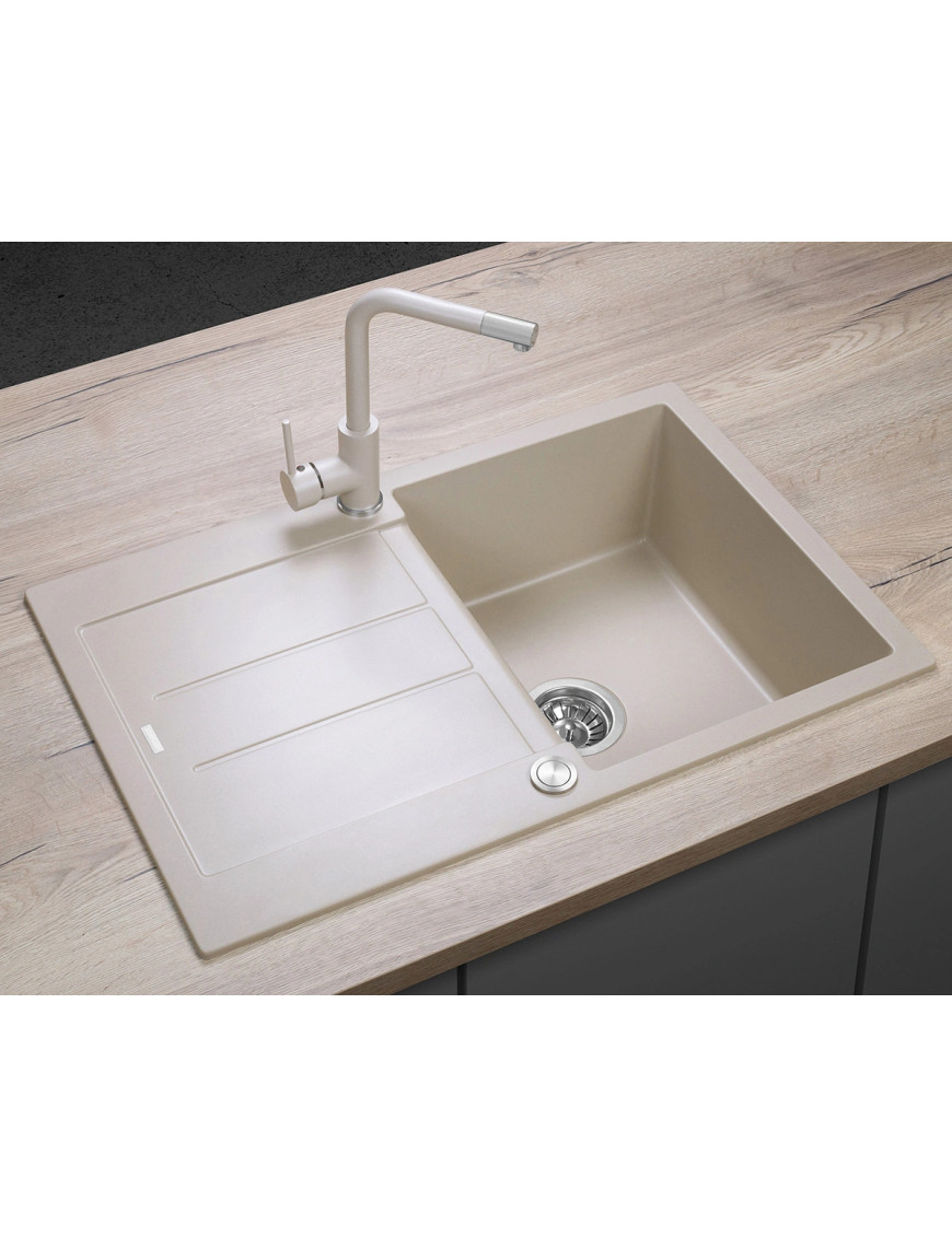 Granitový drez s odkvapom CUBIS; DG10C45be; Kvalitné spracovanie; PUSH-IN ovládanie; Flexibilné využitie; Moderný design a prednosti; Atraktívny vzhľad, kvalitné spracovanie, vysoká odolnosť a ľahká údržba, to sú hlavné prednosti granitových drezov Con...