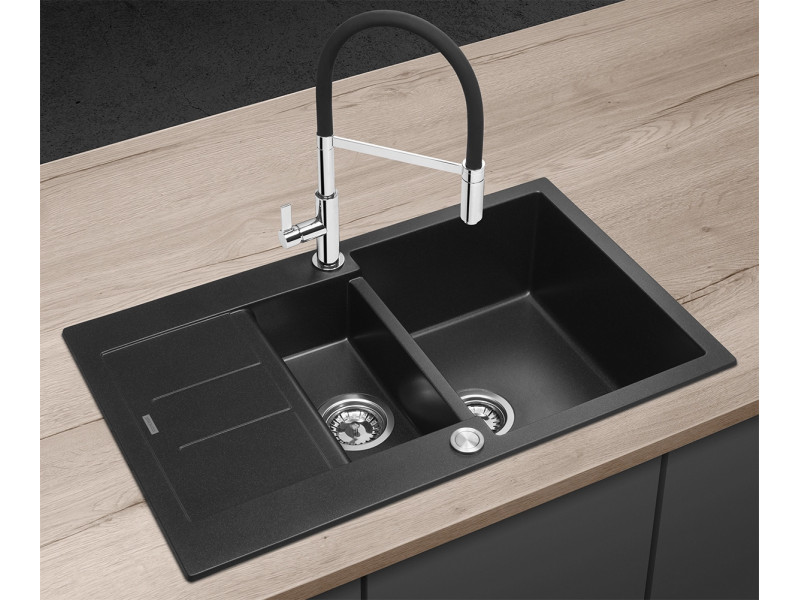 CONCEPT DG205C60bc Drez granitový s vaničkou a odkvapom Cubis ČIERNY