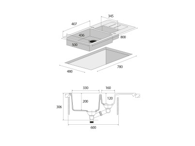 Model DG205C60bc je hranatý kuchynský drez s odkvapom. Je vhodný pre montáž na dosku s minimálnou šírkou skrinky 60 cm. Je opatrený sieťkovým ventilom 3 1/2" s prepadom a sifónom s odbočkou na umývačku riadu. Benefitom sú dva predvŕtané otvory, takže vám odpadá nepríjemná práca s ich vyvrtávaním. Súčasťou balenia sú i kovové súčiastky na uchytenie drezu k pracovnej doske.