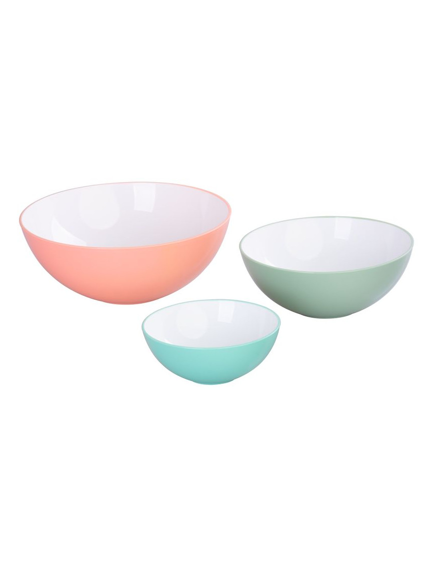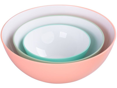 Sada šalátových misiek MagicHome v decentných pudrových farbách obsahuje 3 rôzne misky s objemom 0,6/1,5/3 litrov. Sú vhodné do mikrovlnky aj umývačky riadu.