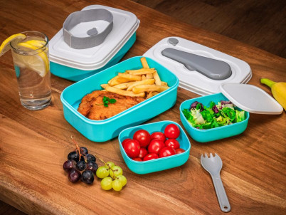 Obedár MagicHome, hranatý, 2 dielny, s vidličkou/lyžicou, 2x 1000 ml, 20,8x13,5x12,4 cm