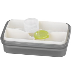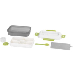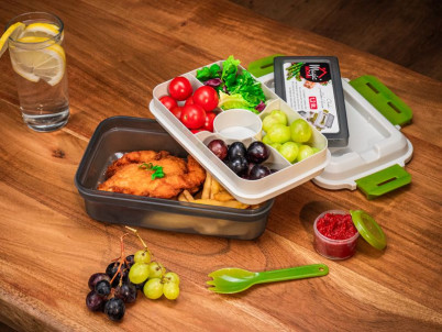 Plastový obedár MagicHome je určený na prenášanie potravín a jedál. Obsahuje vidličku/lyžicu a misku s priehradkami, prostredníctvom ktorých budete mať rozdelené jednotlivé pokrmy. Obedár má 1,2 litrový objem. Plastový obedár môžete umývať v umývačke riadu, odkladať v chladničke i mrazničke. Rozmer : 23x15x8,8 cm.