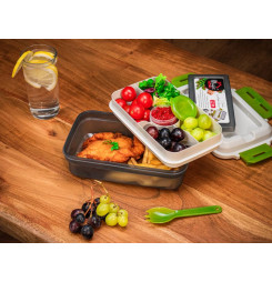 Obedár MagicHome, hranatý, s vidličkou/lyžicou, 1200 ml, 23x15x8,8 cm