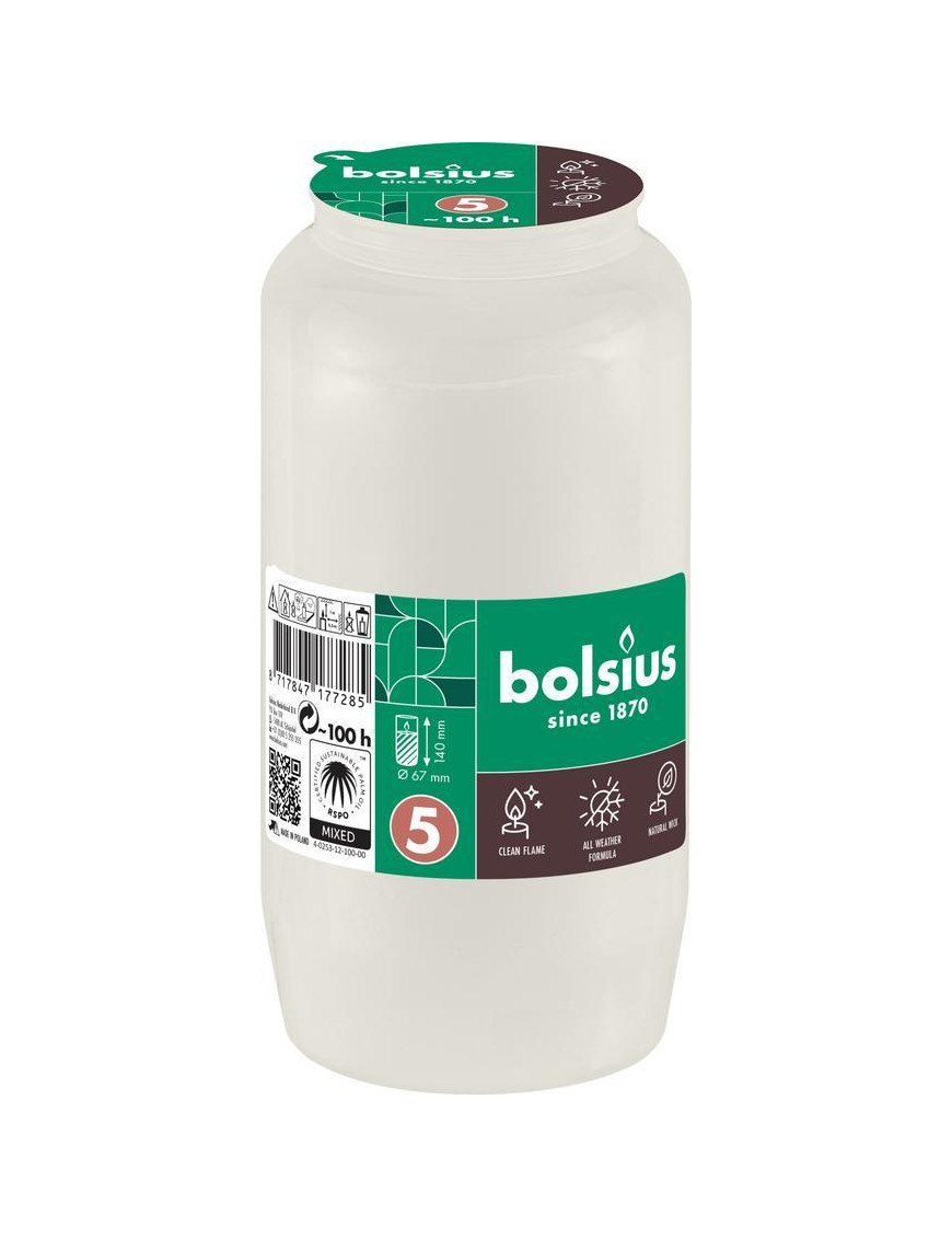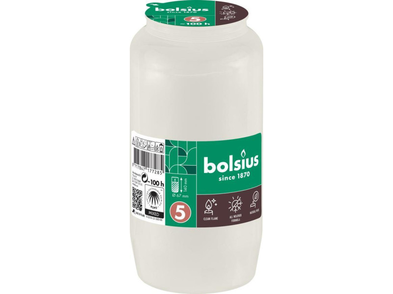 Olejová náplň Bolsius vyhorí až do konca, horí krásnym rovnomerným plameňom aj pri vysokej vlhkosti, veternom počasí alebo mraze. Nedymí, nefarbí a neničí lampáše. Doba horenia: 100 hodín. Balenie obsahuje 24 ks.