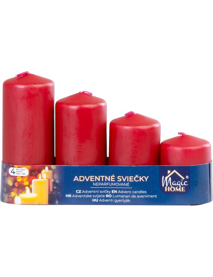 Adventné sviečky MagicHome skvele dotvoria čarovnú atmosféru Vianoc u Vás doma. Perfektne sa hodia na dotvorenie do advetných vencov či dekorácií. 4 rôzne výšky - 4,8x6 cm - váha vosku 85g, 4,8x8 cm - váha vosku 110 g, 4,8x10 cm - váha vosku 140 g, 4,8x12 cm - váha vosku 170 g. Farba: bordová.