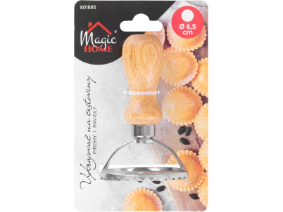 Uľahčite si prácu pri príprave cestovín a vyskúšajte praktický vykrajovač MagicHome. Ľahko ním pripravíte pirohy, ravioly a sušienky. Jednoduchá manipulácia, zúbkované okraje stlačia cesto tak, aby z neho jeho obsah nevytiekol. Je vyrobený z hliníkovej zliatiny a dreva. Nie je vhodný do umývačky riadu. Rozmery: 6,5x10 cm.