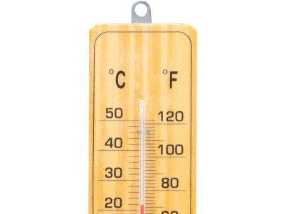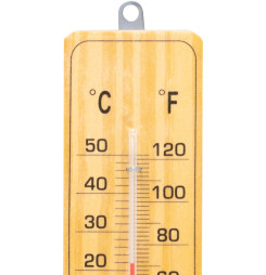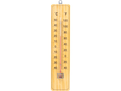 Vonkajší teplomer s dreveným podkladom, meria teplotu v rozsahu od 50°C do -40°C