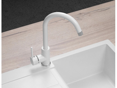 Drezová batéria BDG3334wh je spracovaná v jednoduchom a elegantnom designe. Povrch batérie tvorí kvalitná farba s designom granitového povrchu v kombinácii s lesklými chrómovými detailmi. Dokonale ladí s bielymi granitovými drezmi Concept. Tento model ponúka ďalšie 3 farebné varianty: čierna (BDG3334bc), béžová (BDG3334be) a lesklá chrómová (BDC3334).