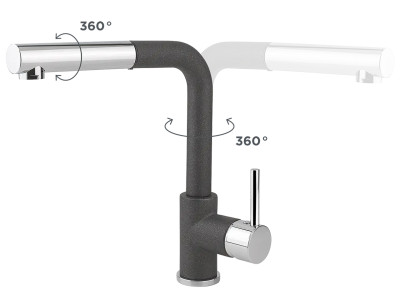 Drezová batéria Concept BDG4527dg; Vyberateľná sprchová hadica; Rotácia 360°; Úsporný perlátor; Vyberateľná sprchová hadica; Drezová batéria BDG4527dg disponuje výsuvnou sprchovou hadicou, ktorá dosahuje dĺžku až 115 cm. Pohodlne s ňou opláchnete ovoci...