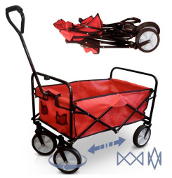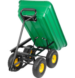 Záhradný vozík vhodný na používanie v záhrade, na dvore, ... Veľké kolesá s guličkovými ložiskami a pneumatikami, veľká vaňa.