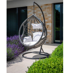 Záhradná hojdačka ideálna aj na terasu, balkón, lodžiu, po sklopení operadla poskytuje dostatok miesta na ležanie pre dve osoby. Pevná konštrukcia z kovových lakovaných rúrok, čalúnenie z polyesteru s upevnením pomocou suchého zipsu. Veľká strieška s možnosťou nastavenia sklonu.