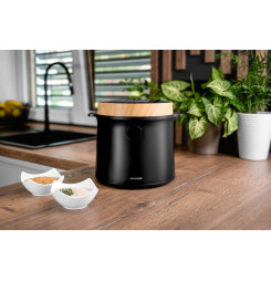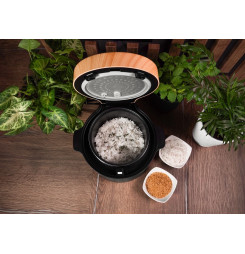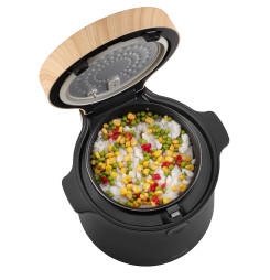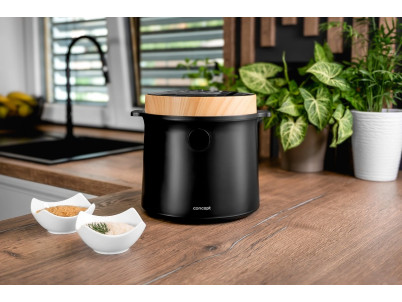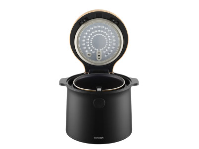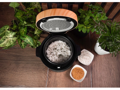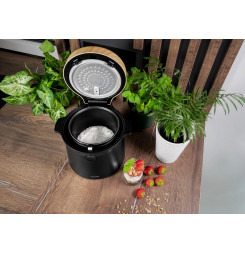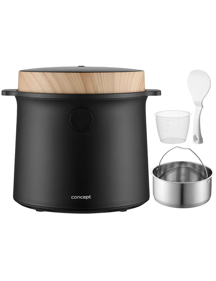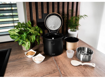 Ryžovar Concept RE4040 kombinuje praktické funkcie so štýlovým vzhľadom, ktorý sa hodí do akejkoľvek kuchyne. Jeho elegantný čierny dizajn s drevenými prvkami perfektne doplní moderný interiér. Vďaka kompaktným rozmerom sa ľahko umiestni na kuchynskú linku alebo do skrinky bez toho, aby zaberal príliš veľa miesta. Navyše je ľahký a ľahko prenosný, takže si ho môžete vziať na chalupu alebo na akékoľvek iné miesto, kde ho budete potrebovať.