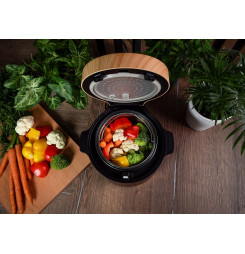 Disponuje 9 programami, funkciou udržiavania teploty Keep Warm, dotykovým digitálnym displejom, časovačom a bezpečnostnou poistkou proti prehriatiu. Vyberateľná vnútorná nádoba s objemom 2 l je vybavená nepriľnavým povrchom pre jednoduchú údržbu.