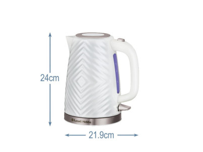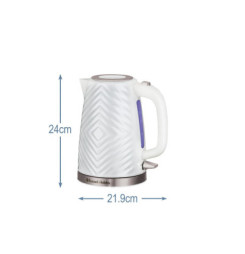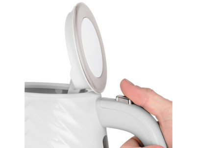 Kanvica Groove White má textúrovaný dizajn s prvkami z brúsenej nerezovej ocele. Kapacita 1,7 l, príkon: 2400 W, ušetrí až 66 % energie, jednu šálku uvarí za 54 sekúnd, ukazovateľ množstva vody, vnútorné modré osvetlenie, stlačením otvárateľné veko, funkcia zóny rýchleho varu ukazovateľa na 1/2/3 šálky, zdokonalený lievik, uvarí jednu šálku za 5...