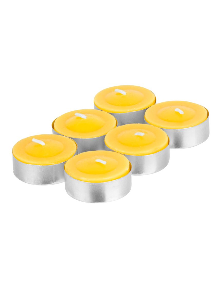 Klasická čajová sviečka bez vôňe do svietnika či lampášu. Farba: žltá. Balenie obsahuje 6 ks sviečok.